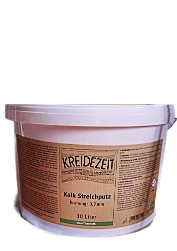 Diese Kalkfarbe mit 0,5mm Körnung für leichten Streichputzcharakter zeichnet sich durch einen sehr hohen Weißgrad aus, ein enormes Binde- und Haftvermögen und ist streichfertig erhältlich. Beste Verarbeitung mit Malerbürste.