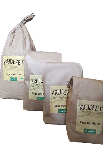 Natürliches Weiß durch Marmormehle, Weißgrad entspricht KaseinMarmormehlfarbe und Vega Wandfarbe von Kreidezeit.