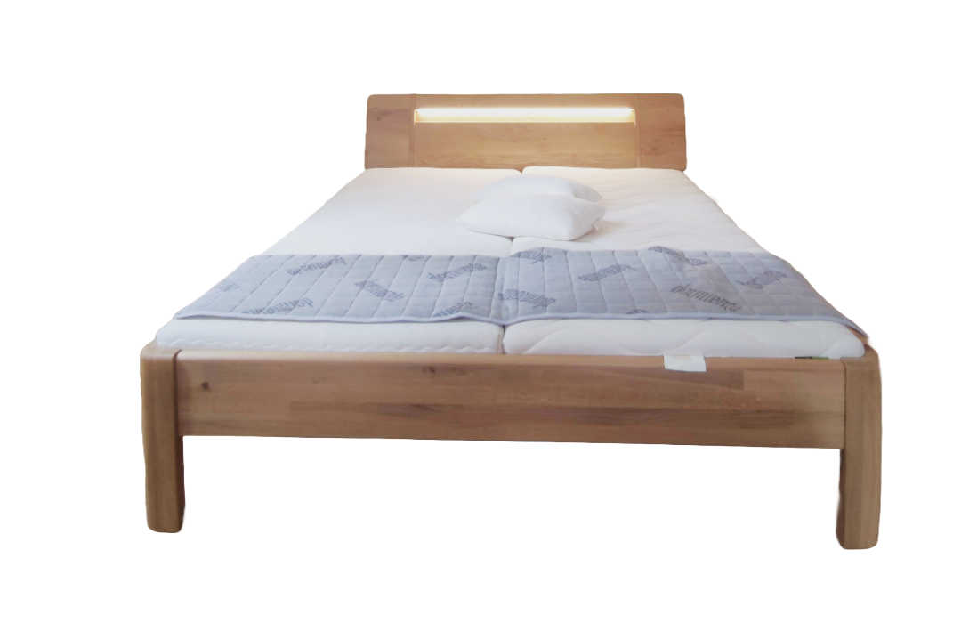 modernes Bett im Revival der 50-er Jahre mit schlanken Dimensionen der Beine und Brettstärken dank der Nutzung von Designbuche.