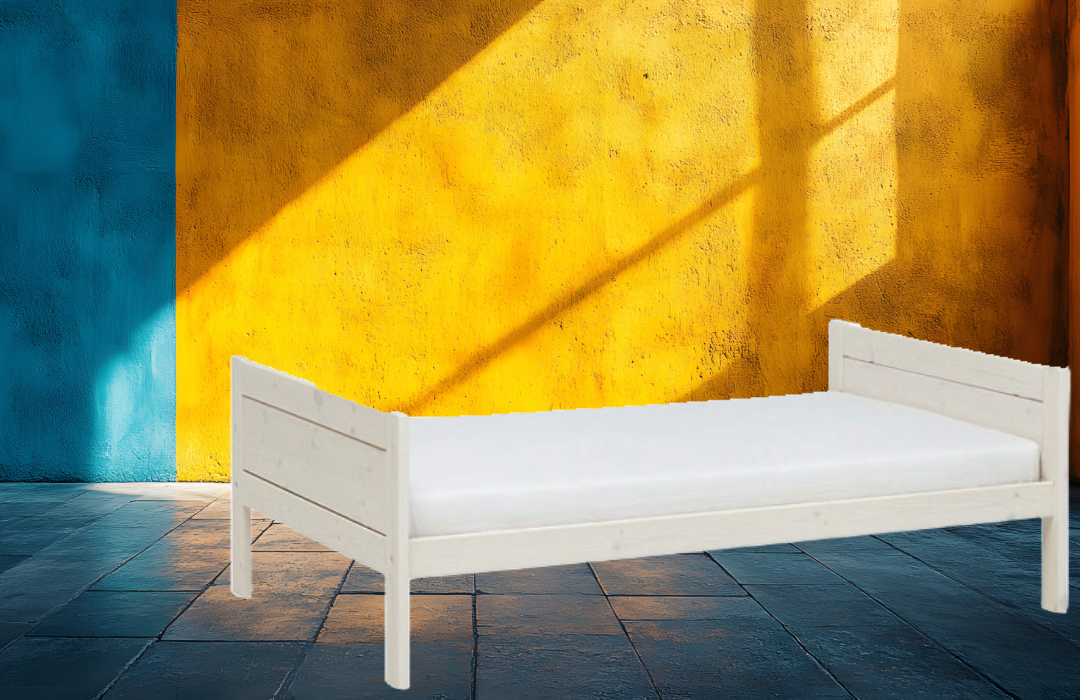 Massivholzbett weiß im skandinavischen Stil. Lifetimekidsrooms