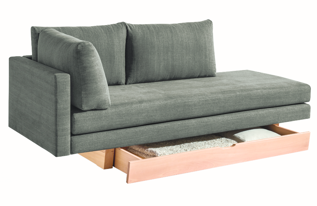 Alle Modelle der Natur-Schlafsofas von Dormiente verbinden elegantes Design mit nachhaltigem Komfort – tagsüber stilvolles Sofa, nachts vollwertiges Bett mit Naturlatexmatratze.